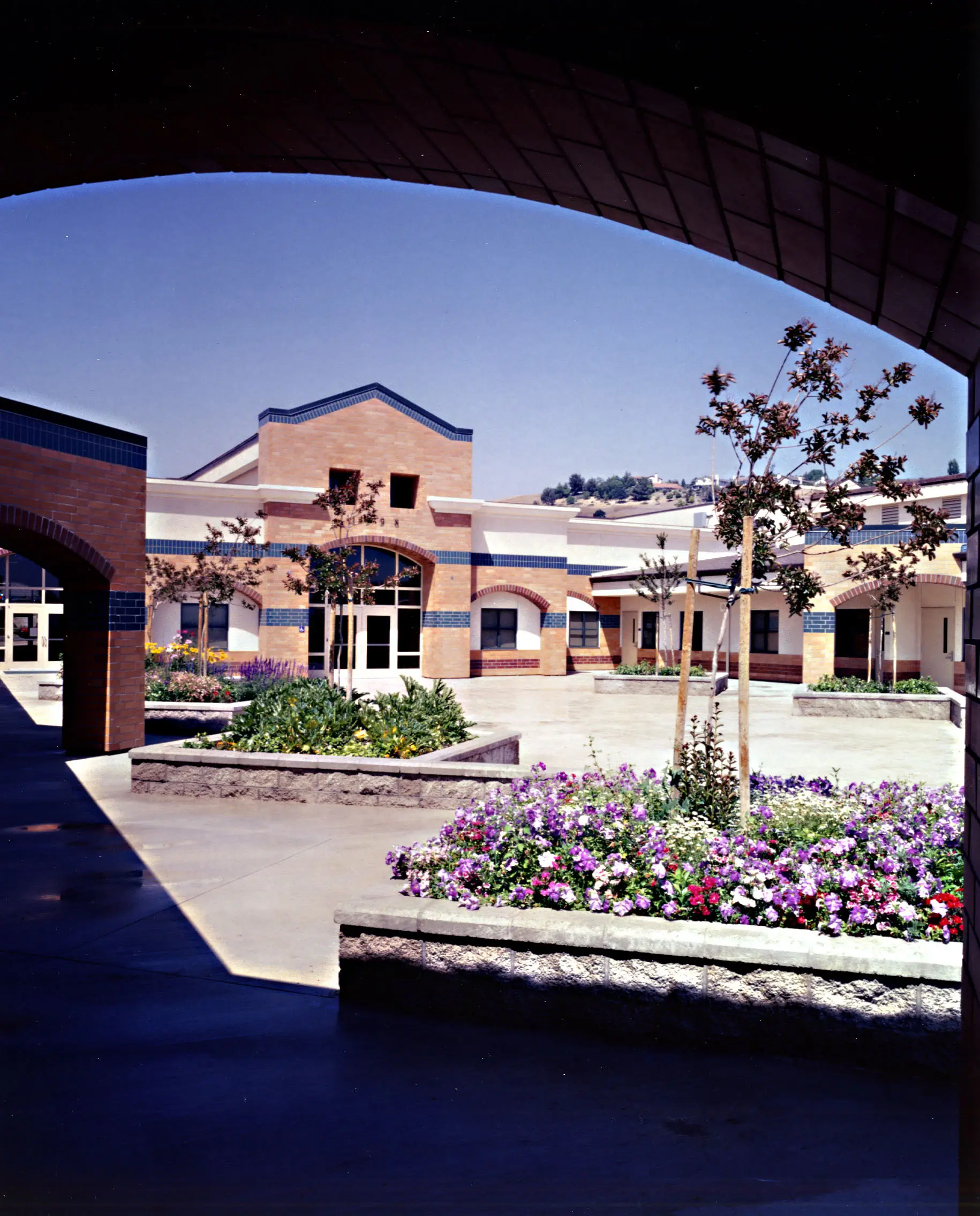 By teaming with an active community, our design did more than just address their concerns for a state-of-the-art school. It also provided an aesthetically pleasing and flexible facility. Grading the 7.5-acre, sloping site into two tiers solved space constraints and provided additional safety and security. More than 50,000 SF of facilities were placed on the upper tier, overlooking play fields on the lower, and facilitated easy partitioning and supervision. In the spirit of true teamwork, administrators, designers, and contractors completed fast-track construction in just ten months, even during 1997 El Niño storms.